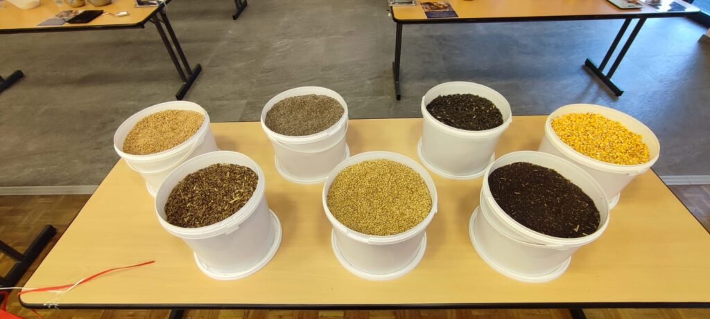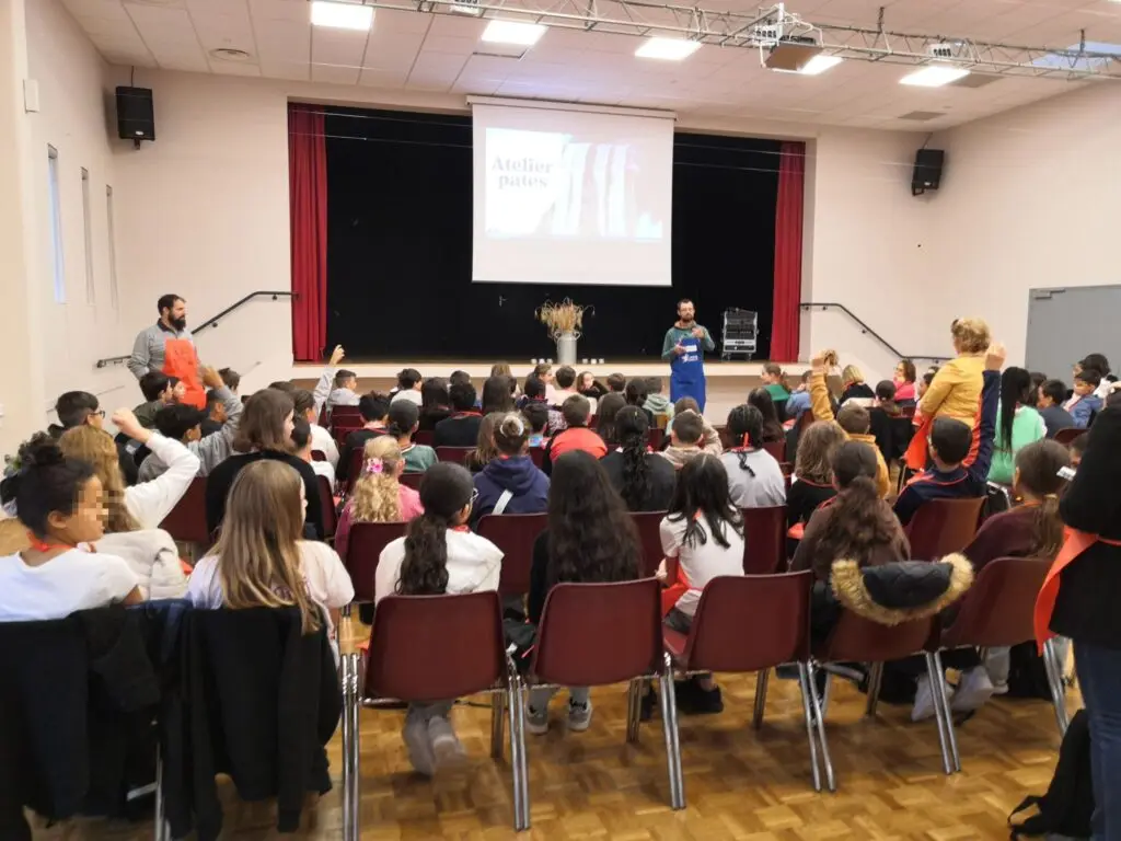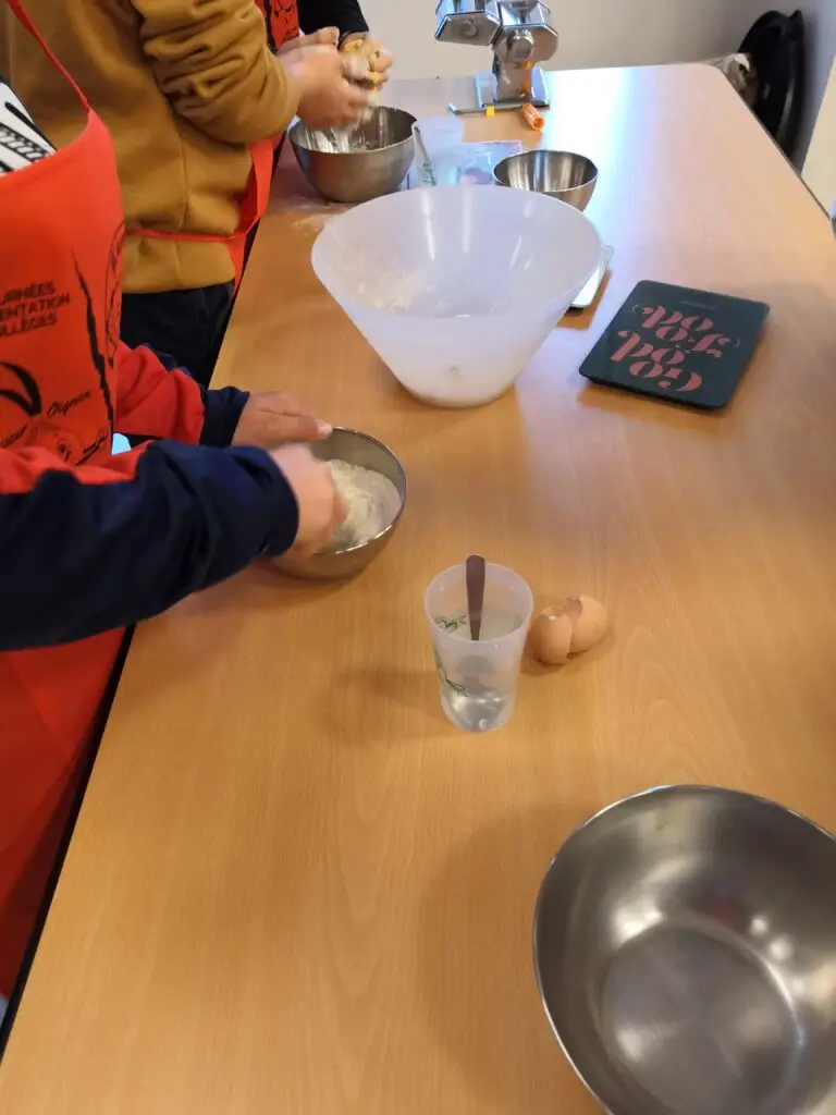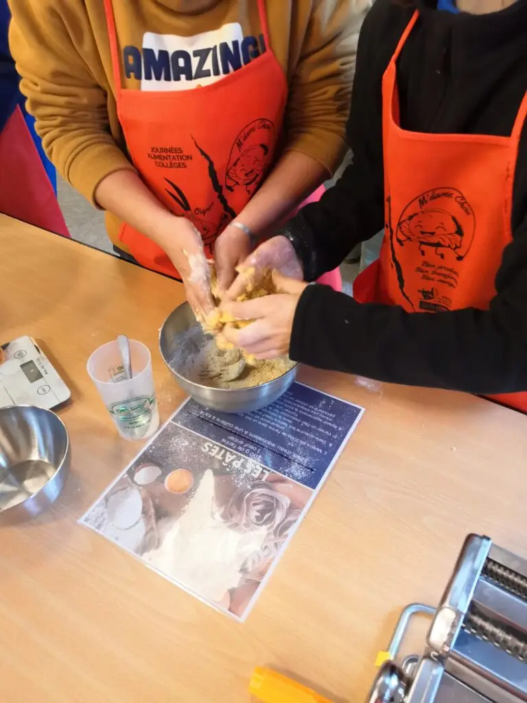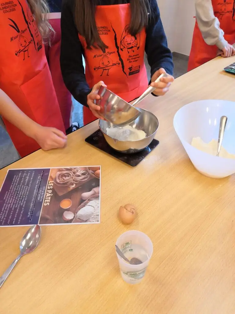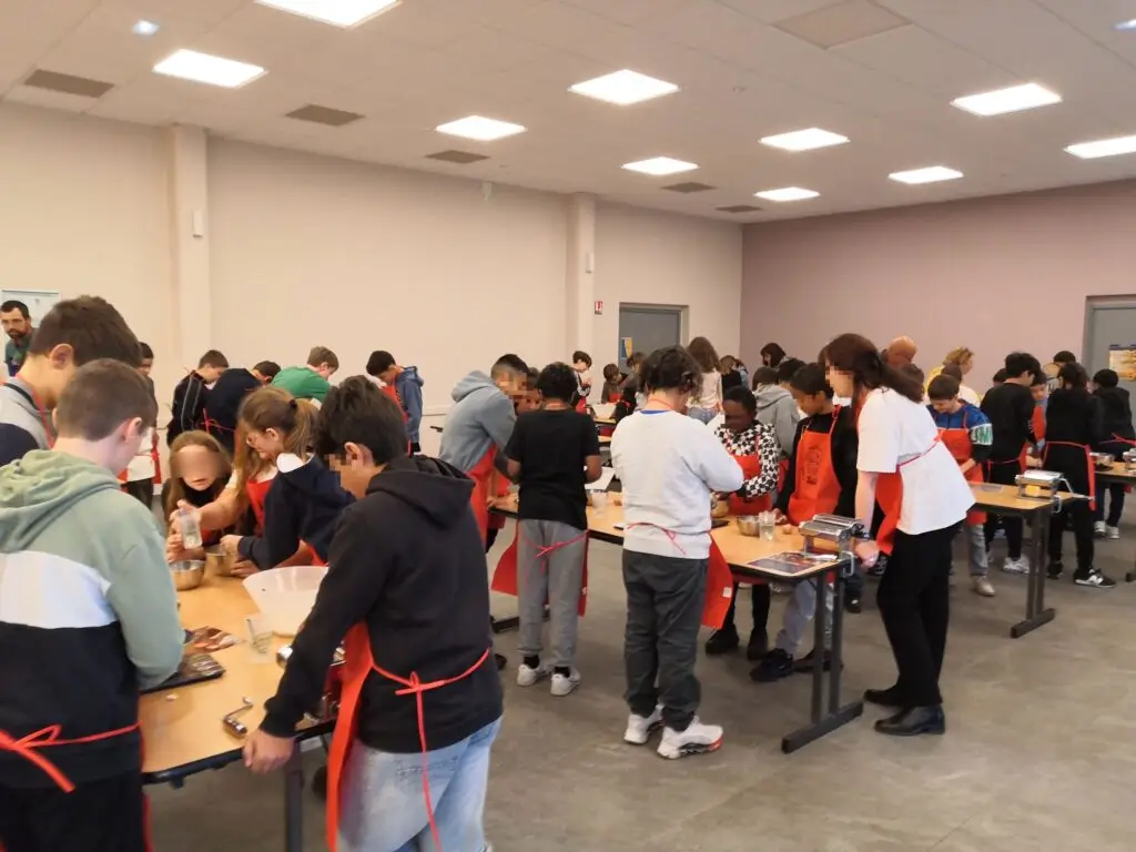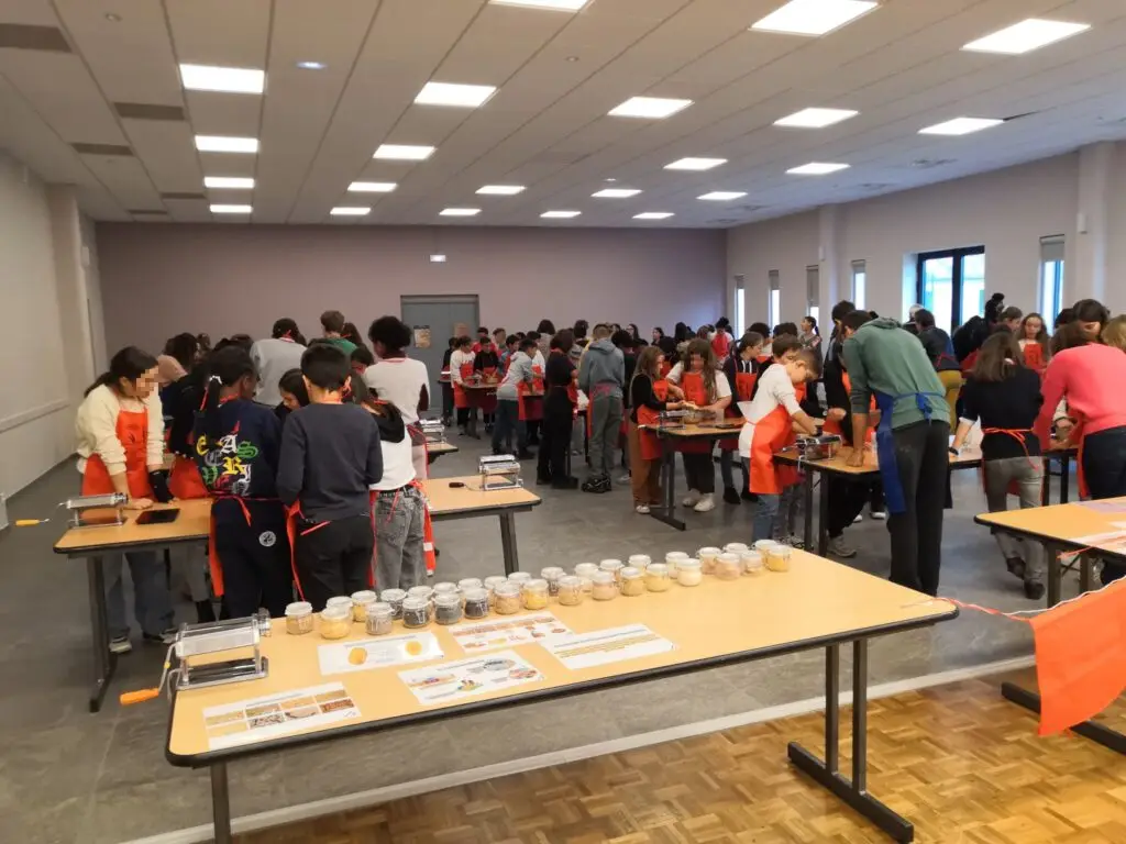 Le mercredi 15 octobre 2025, les classes de 6e du collège ont participé à la 6e édition des Journées Alimentation à la salle des fêtes de Saint Sulpice de Pommeray. Cette manifestation, dont la thématique s’inscrit dans le programme de science du niveau 6e, a permis aux élèves de rencontrer des professionnels de la filière agricole et de participer à des ateliers pratiques. Ils ont ainsi découvert les céréales utilisées dans la fabrication des pâtes et cultivées localement et appréhendé la chaîne de fabrication des pâtes, du champ à l’assiette. Ils ont également découvert la production de lait par la vache, les cinq produits laitiers principaux et leur fabrication. Un atelier leur a permis de transformer le lait en crème et beurre.