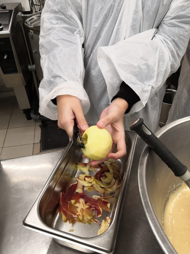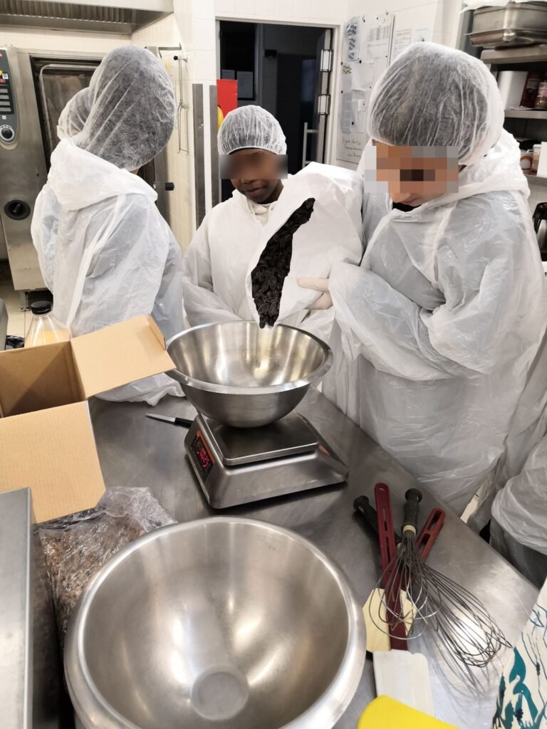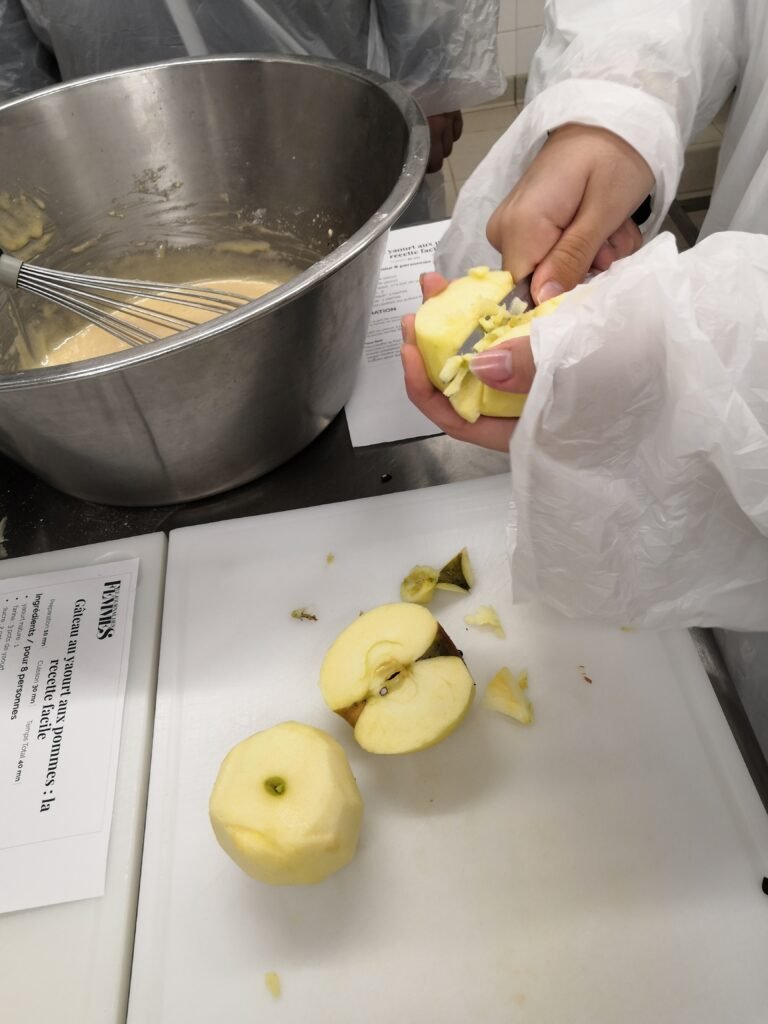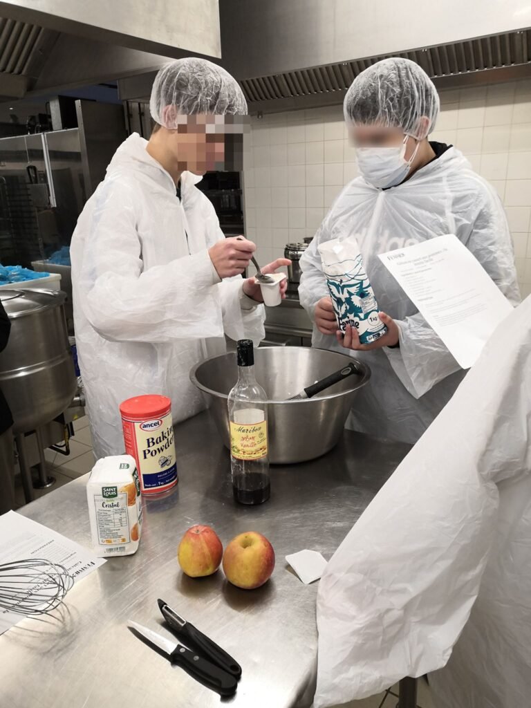Puis ils ont mis la main à la pâte en élaborant plusieurs recettes : Brownies, gâteau au yaourt et à la pomme. L’occasion pour chacune et chacun de suivre les étapes d’une recette, de calculer des quantités et de découvrir la diversité des ustensiles utilisés en restauration.